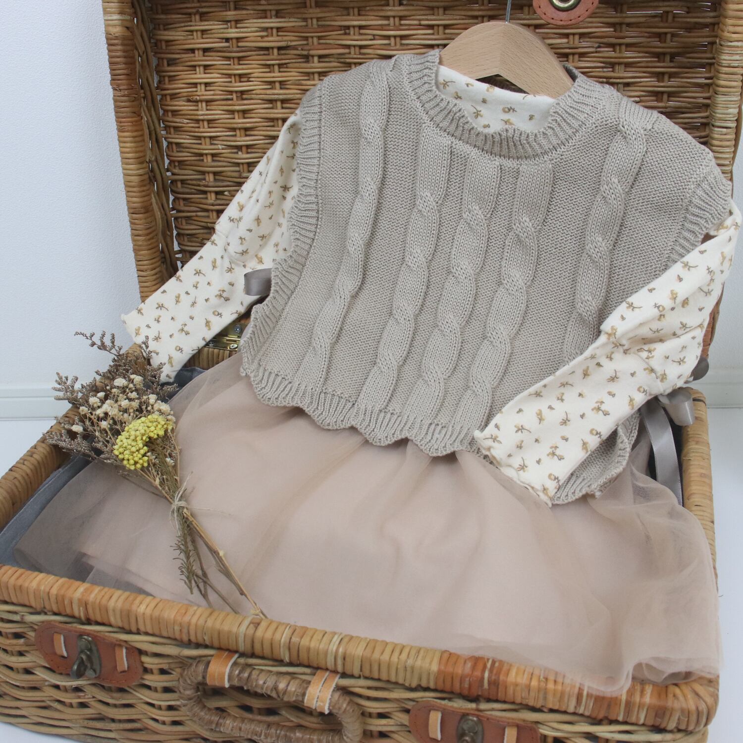 【即納】【送料無料】ベスト ベビー服 子供服 子ども服 服 ベビー キッズ 子ども 子供 ケーブル編み リボン 女の子 秋 冬 秋冬 春 ニット ノースリーブ シンプル ゆったり おしゃれ かわいい カジュアル 韓国 韓国ベビー服 コットン 綿 80 90 100 110