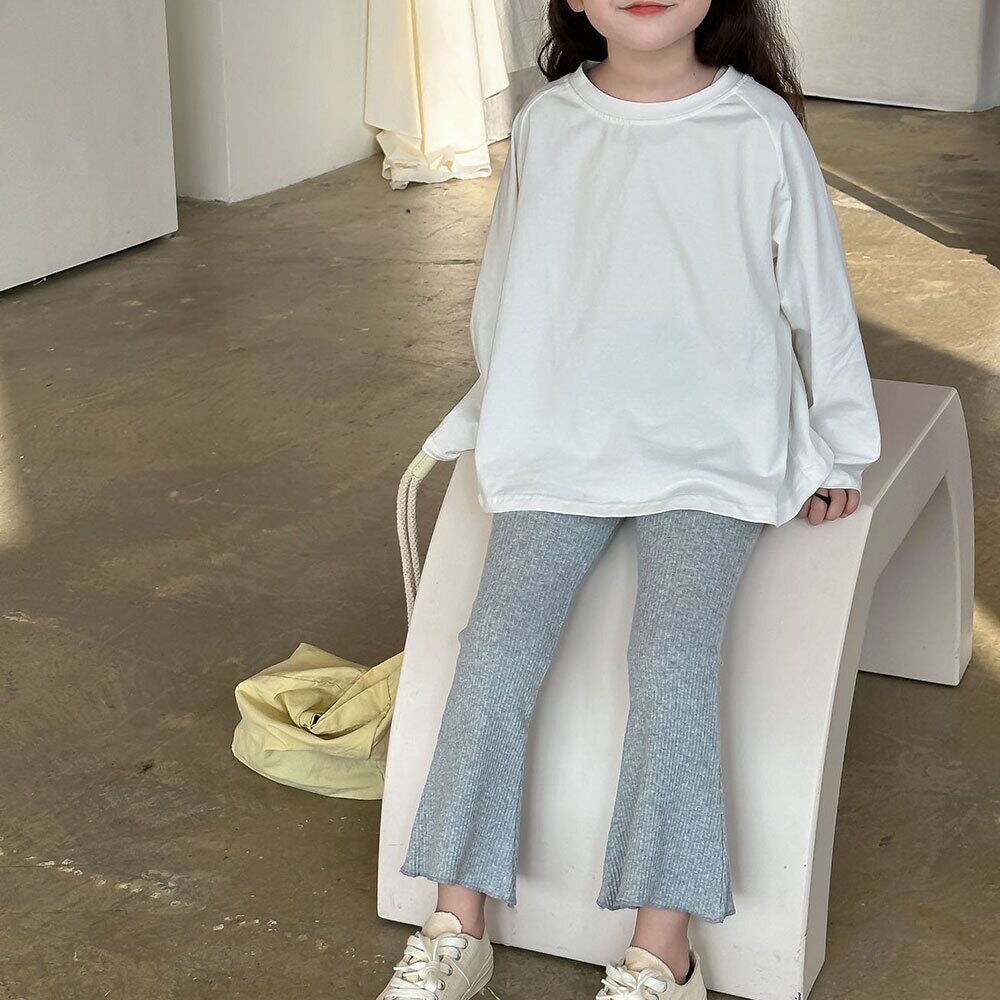 【即納】【送料無料】フレアパンツ レギンス パンツ ズボン 長ズボン メロウ加工 リブ 伸縮性 女の子 春 夏 秋 ベビー服 子供服 子ども服 服 ベビー 子ども 子供 キッズ おしゃれ かわいい カジュアル 韓国 韓国ベビー服 コットン 綿 ホワイト グレー 90 100 110